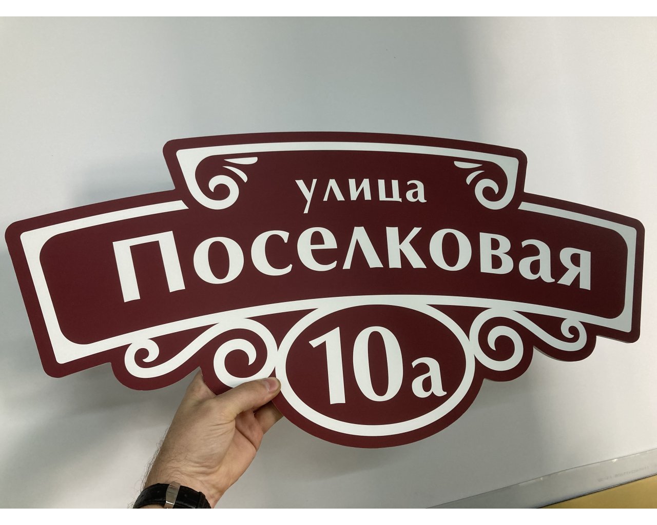 По форме и цвету таблички могут быть совершенно разными. Тут заказчик может включить фантазию, а мы обязательно предложим варианты из своих уже разработанных шаблонов или нарисуем и сделаем ее по его пожеланиям.
